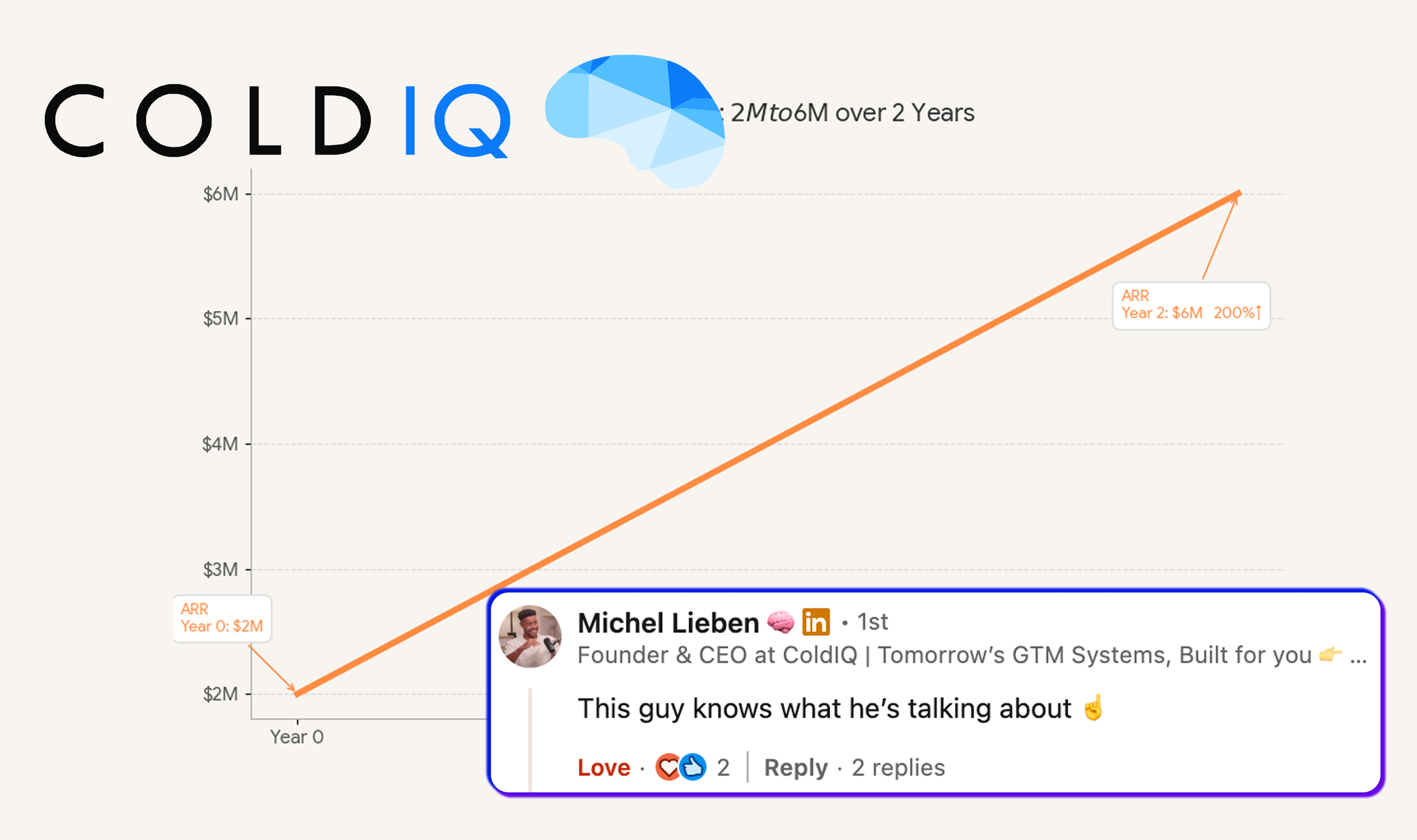 How Outside The Box helped ColdIQ scale from 2.00M ARR to 6.00 ARR in 2 years by supporting all their marketing efforts.